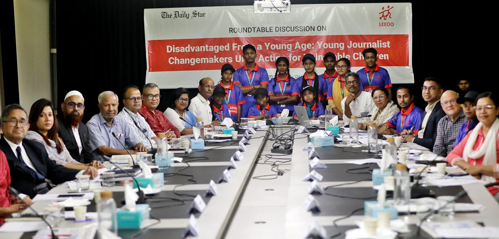 At The Daily Star Centre in Dhaka, these children, now members of LEEDO’s Young Journalist Changemaker Team, took the floor to question policymakers, lawyers, and rights activists on issues that shape their lives. The roundtable discussion, titled “Disadvantaged from a Young Age: Young Journalist Changemakers Urge Action for Vulnerable Children,” was jointly organized by LEEDO (Local Education and Economic Development Organization) and The Daily Star.